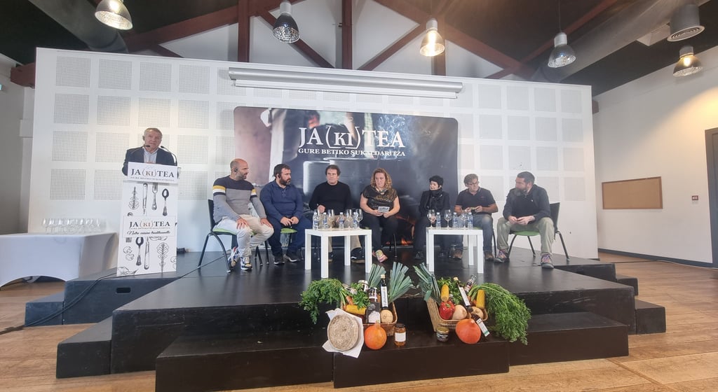Autour du chef du restaurant Aratz de Donostia-Saint Sébastien Xabier Zabaleta et de la journaliste Catherine Marchand, l'association Jakitea a célébré ce lundi 3 novembre son premier congrès de la cuisine traditionelle basque. Des professionnels des sept provinces du Pays Basque tentent de resserrer les liens entre producteurs et restaurateurs.